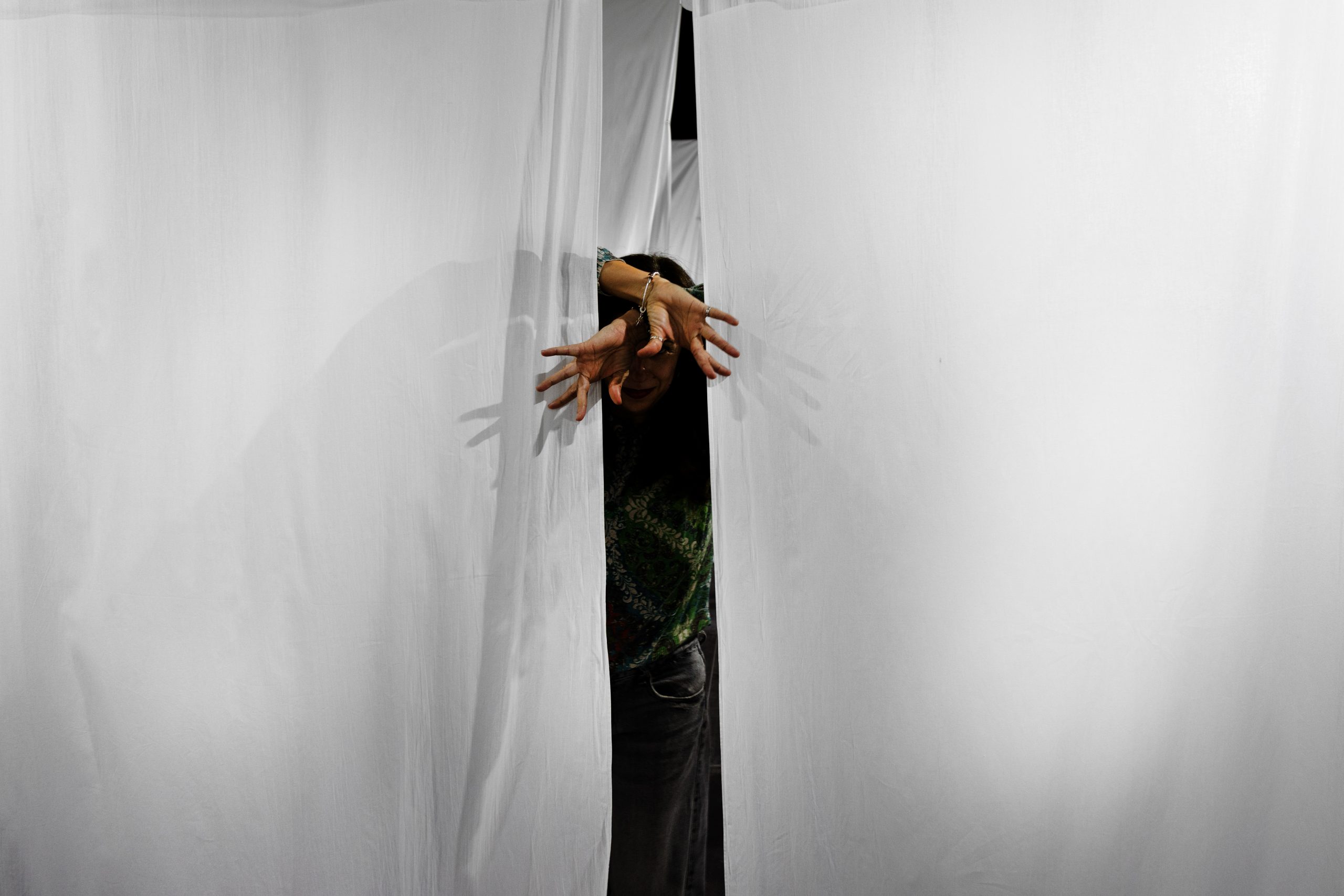 La pieza no pretendía representar directamente esa historia, sino recrear el entorno que fue suyo: ropa blanca al viento, movimiento, luz y el sonido de las telas agitándose.