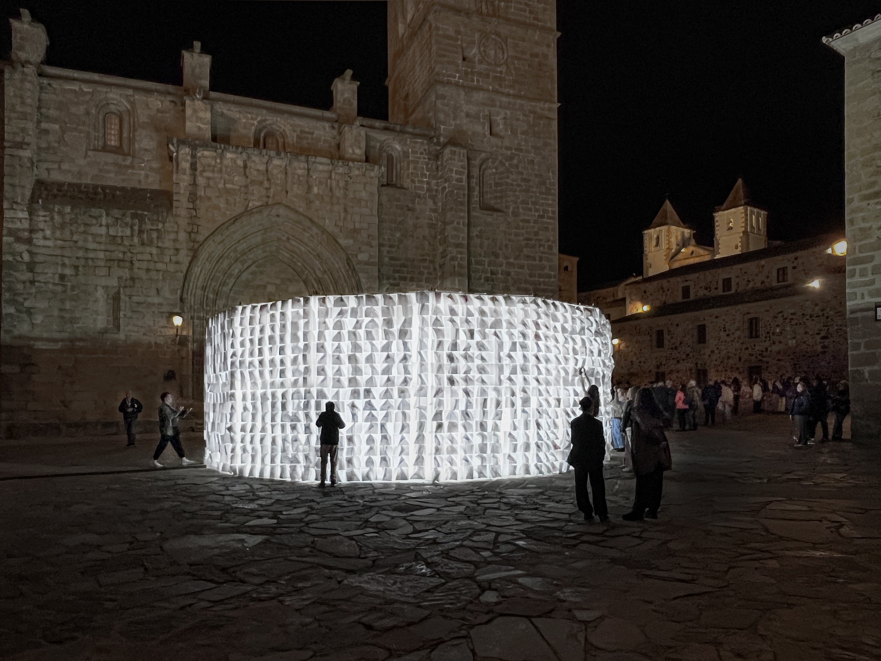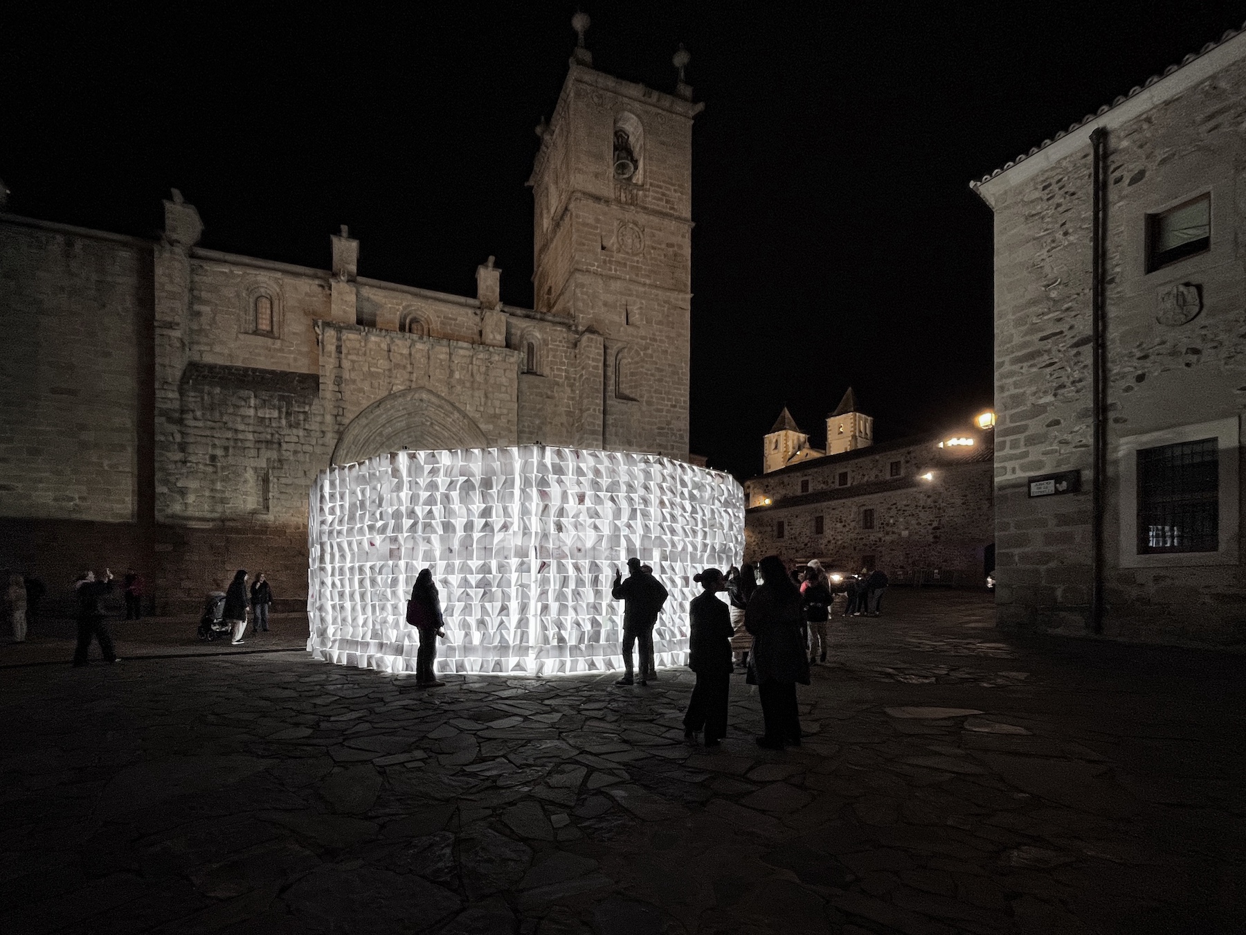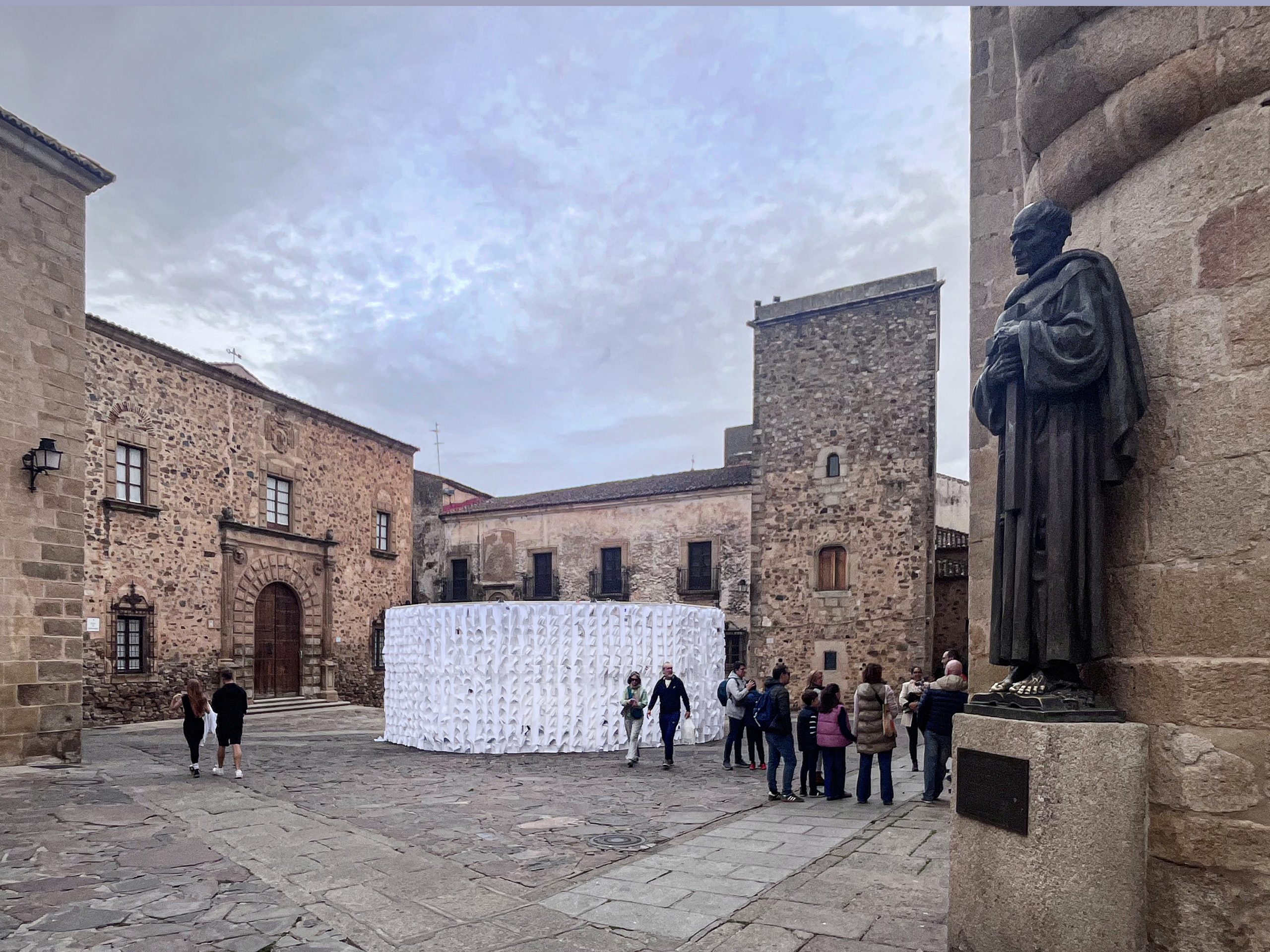 El pasado mes de noviembre fuimos invitados a trabajar en Cáceres con nuestra pieza “En hojas blancas”. La instalación inauguró las actividades con las que la ciudad arranca su candidatura para convertirse en Capital Europea de la Cultura 2031.