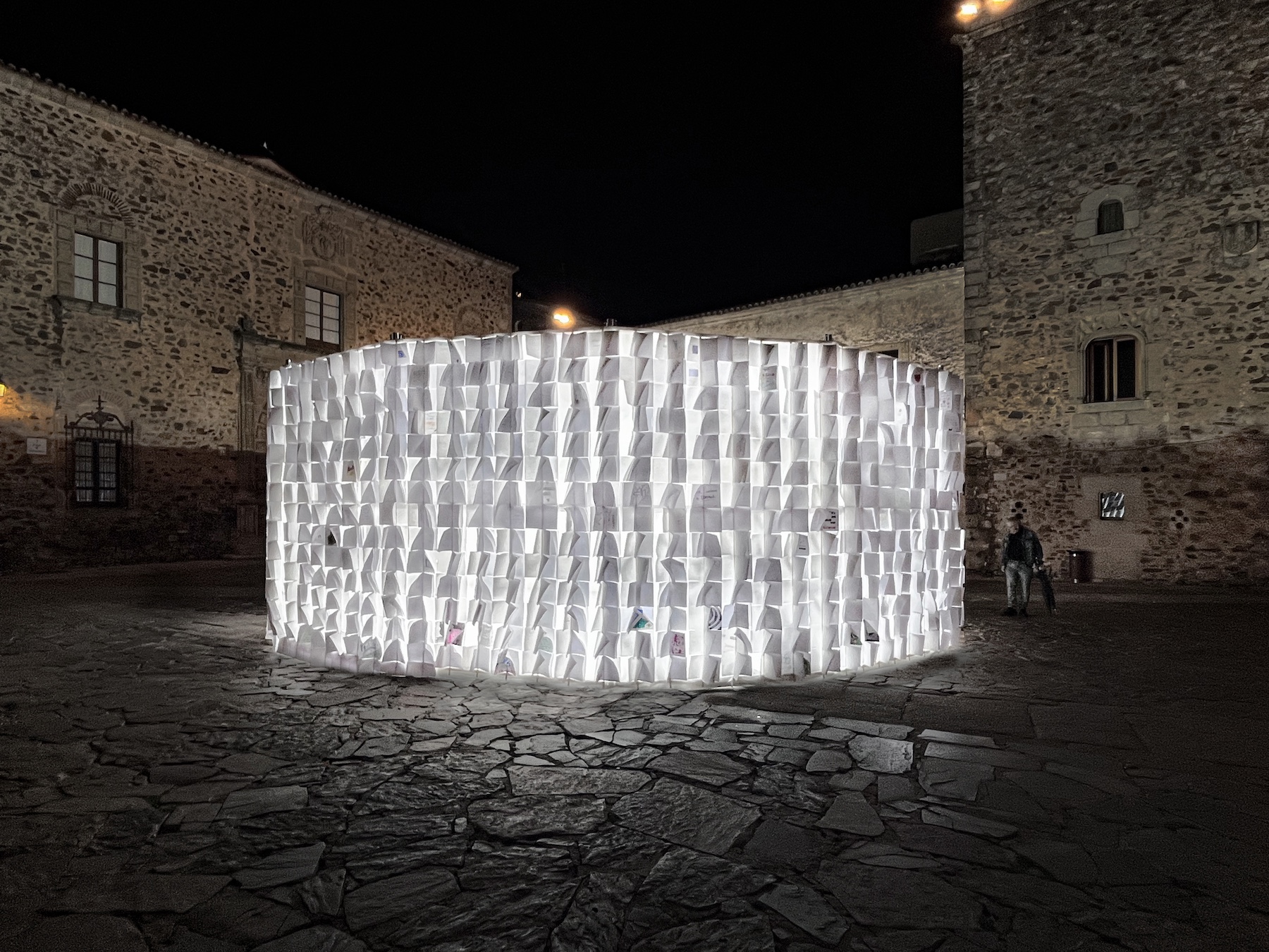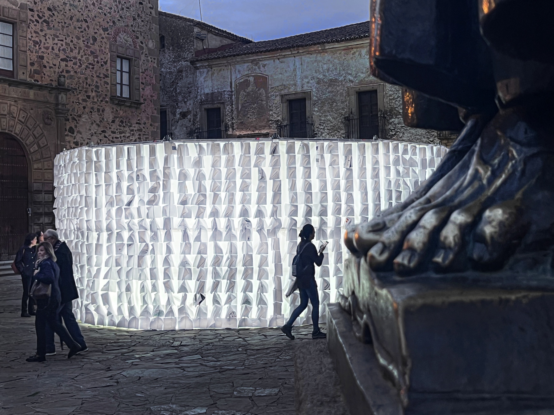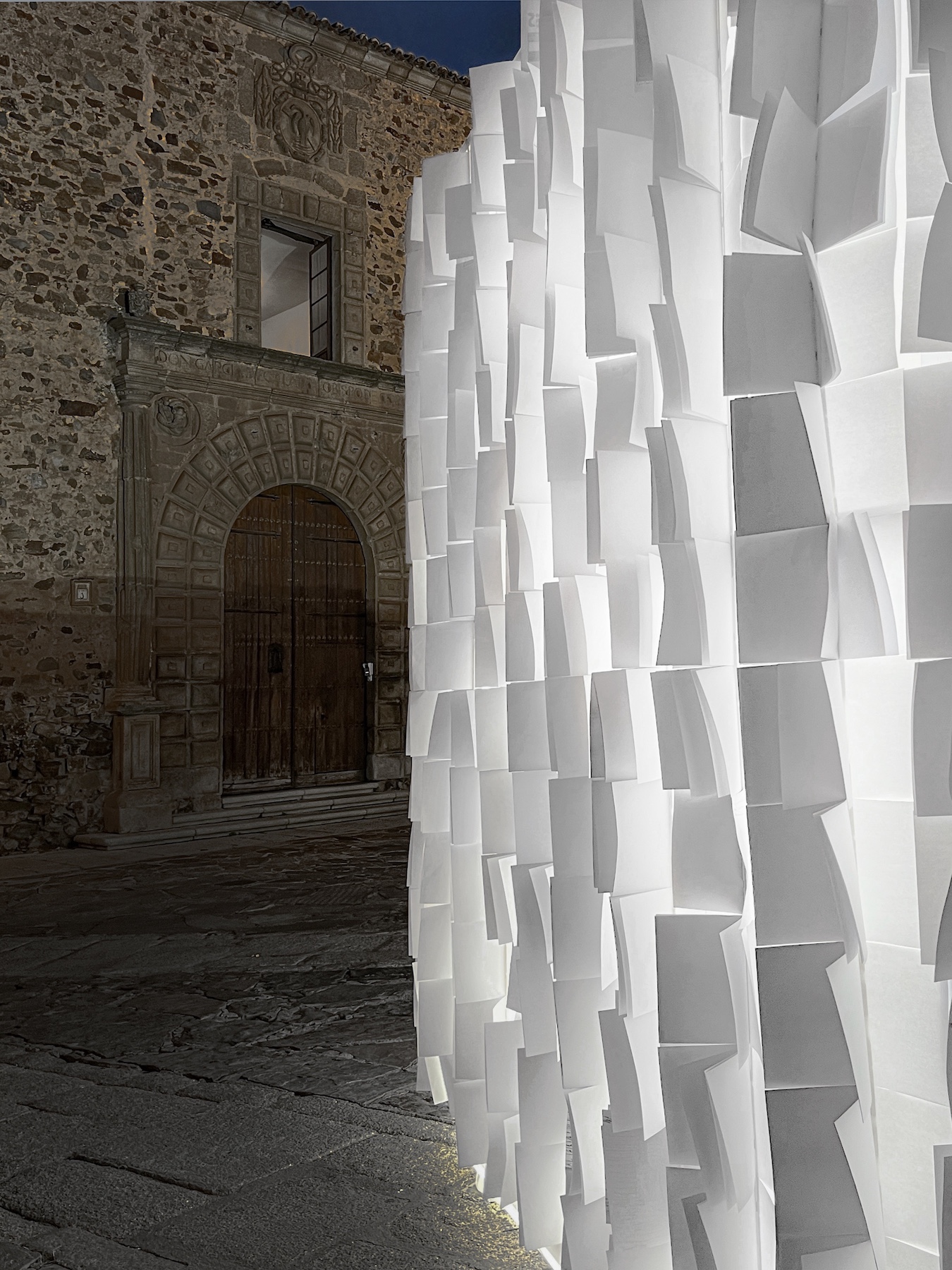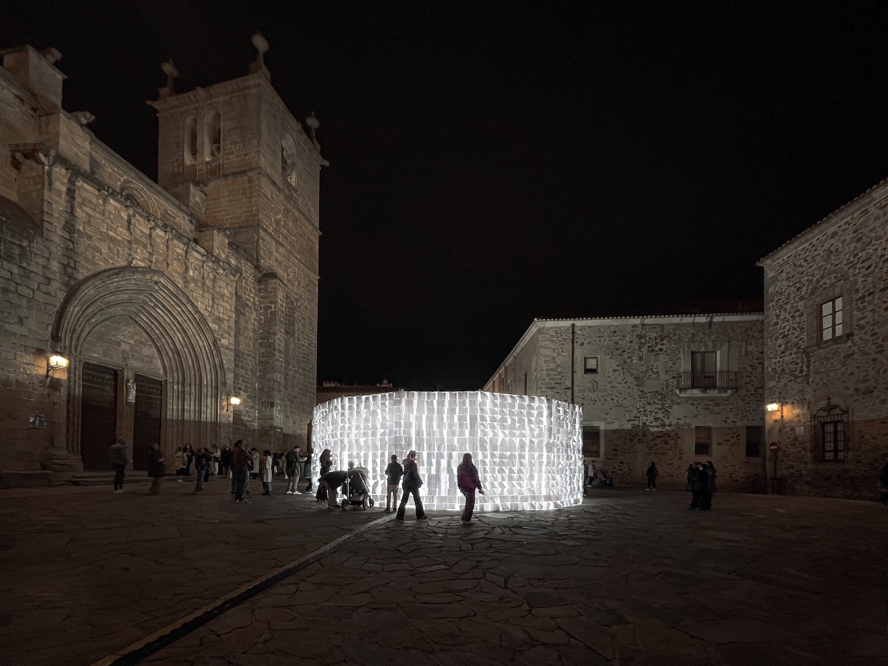 Last November, we were invited to work in Cáceres with our piece “On Blank Pages”. The installation inaugurated the activities with which the city begins its candidacy to become the European Capital of Culture 2031.
