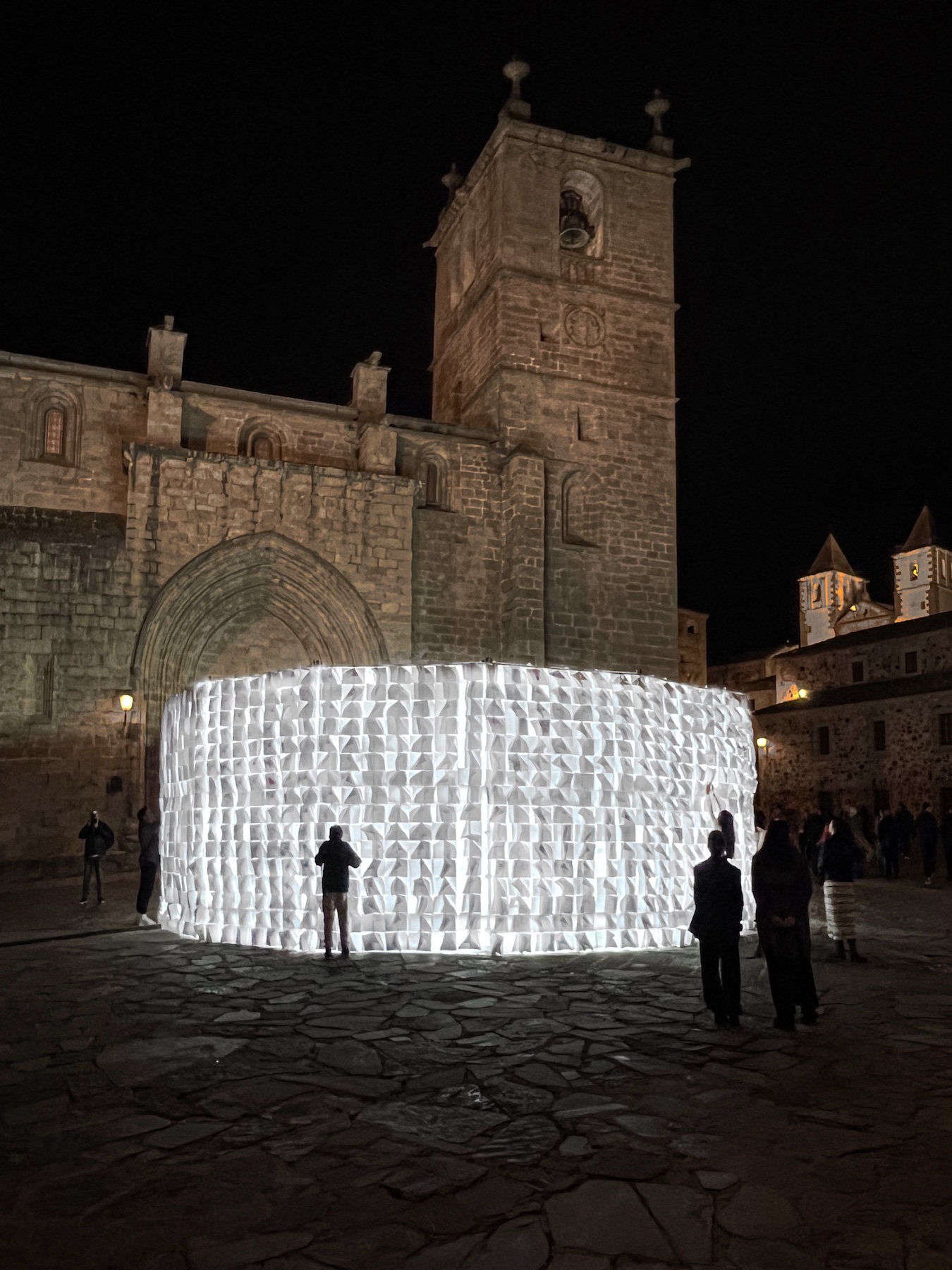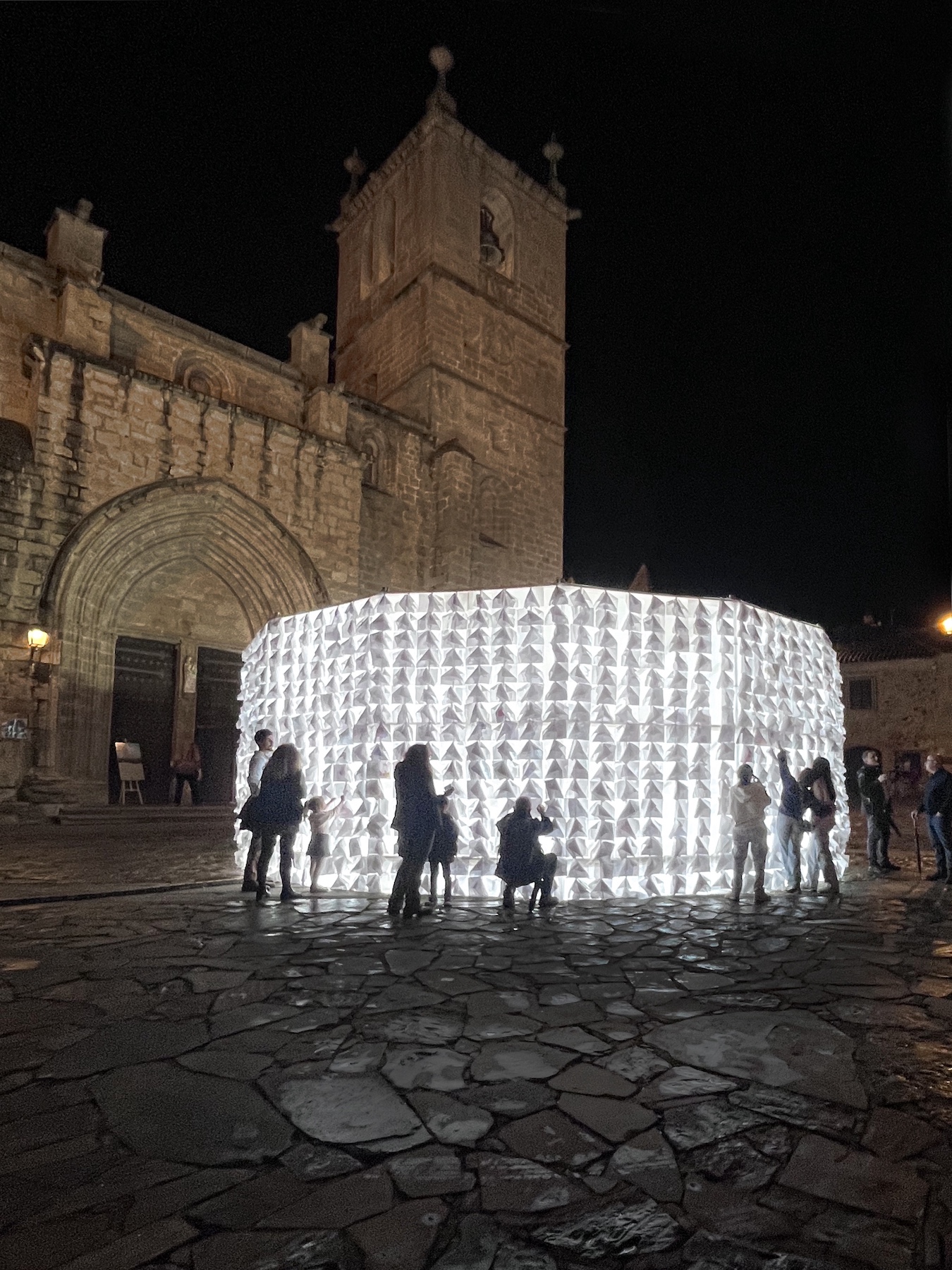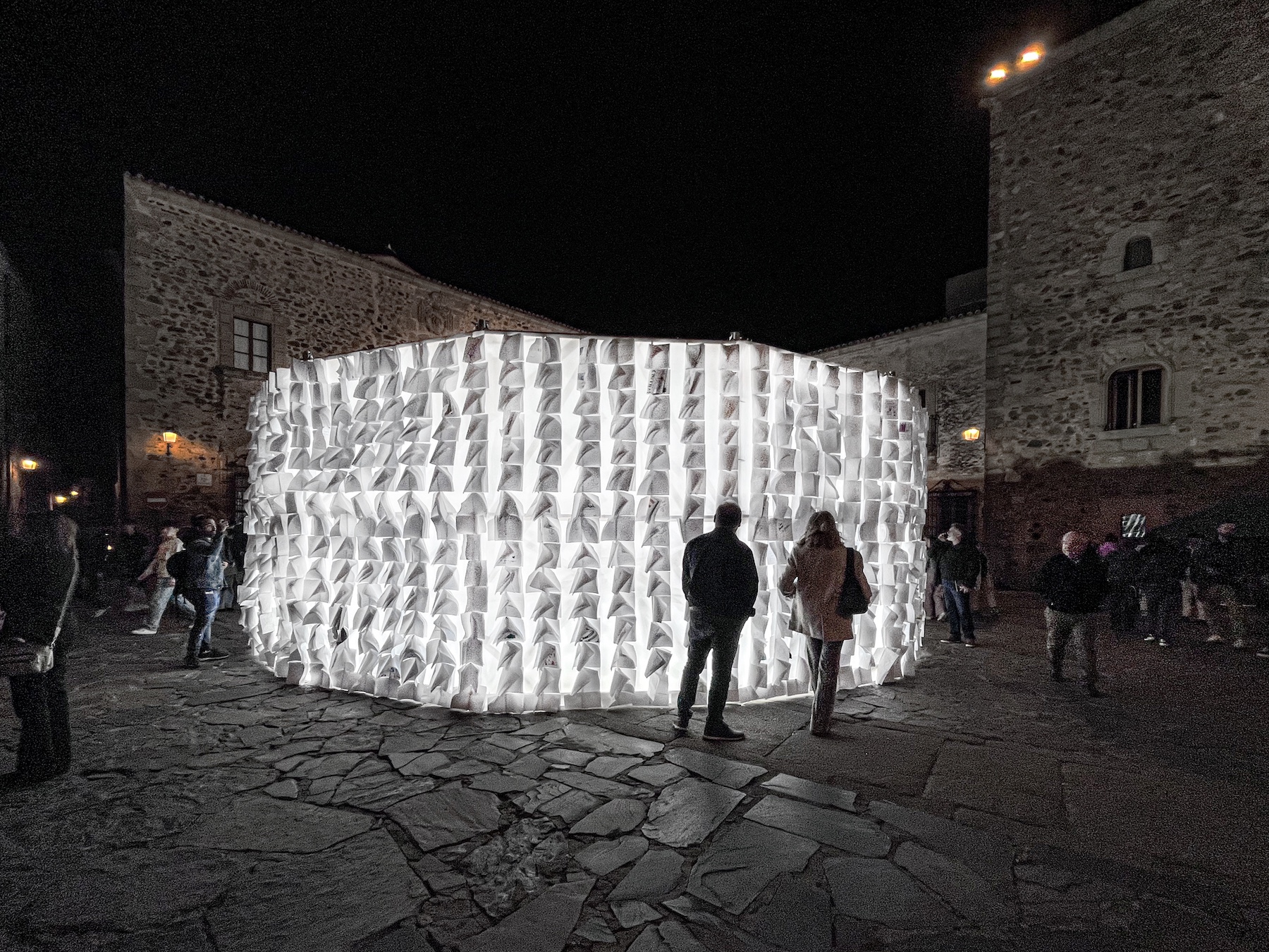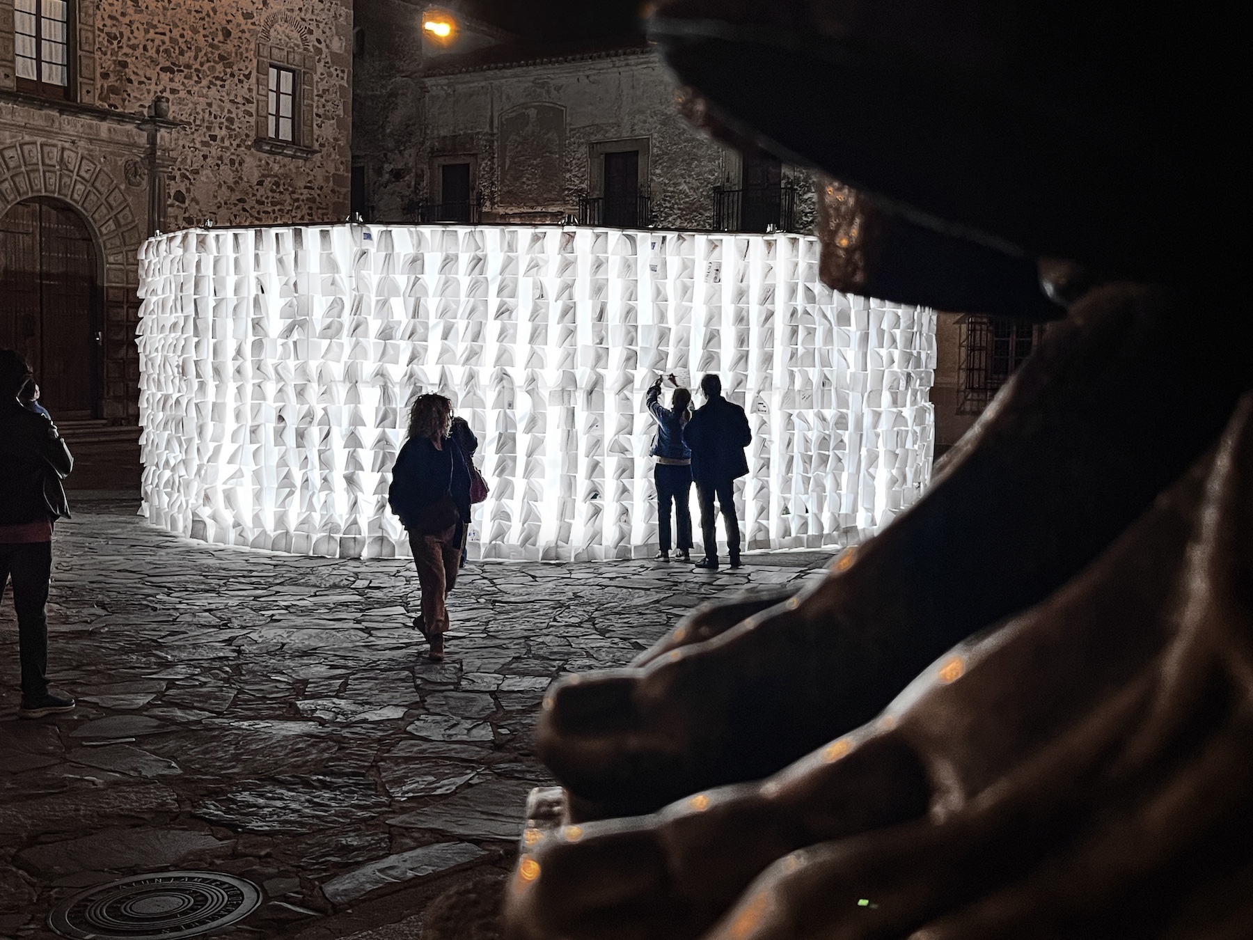 Last November, we were invited to work in Cáceres with our piece “On Blank Pages”. The installation inaugurated the activities with which the city begins its candidacy to become the European Capital of Culture 2031.