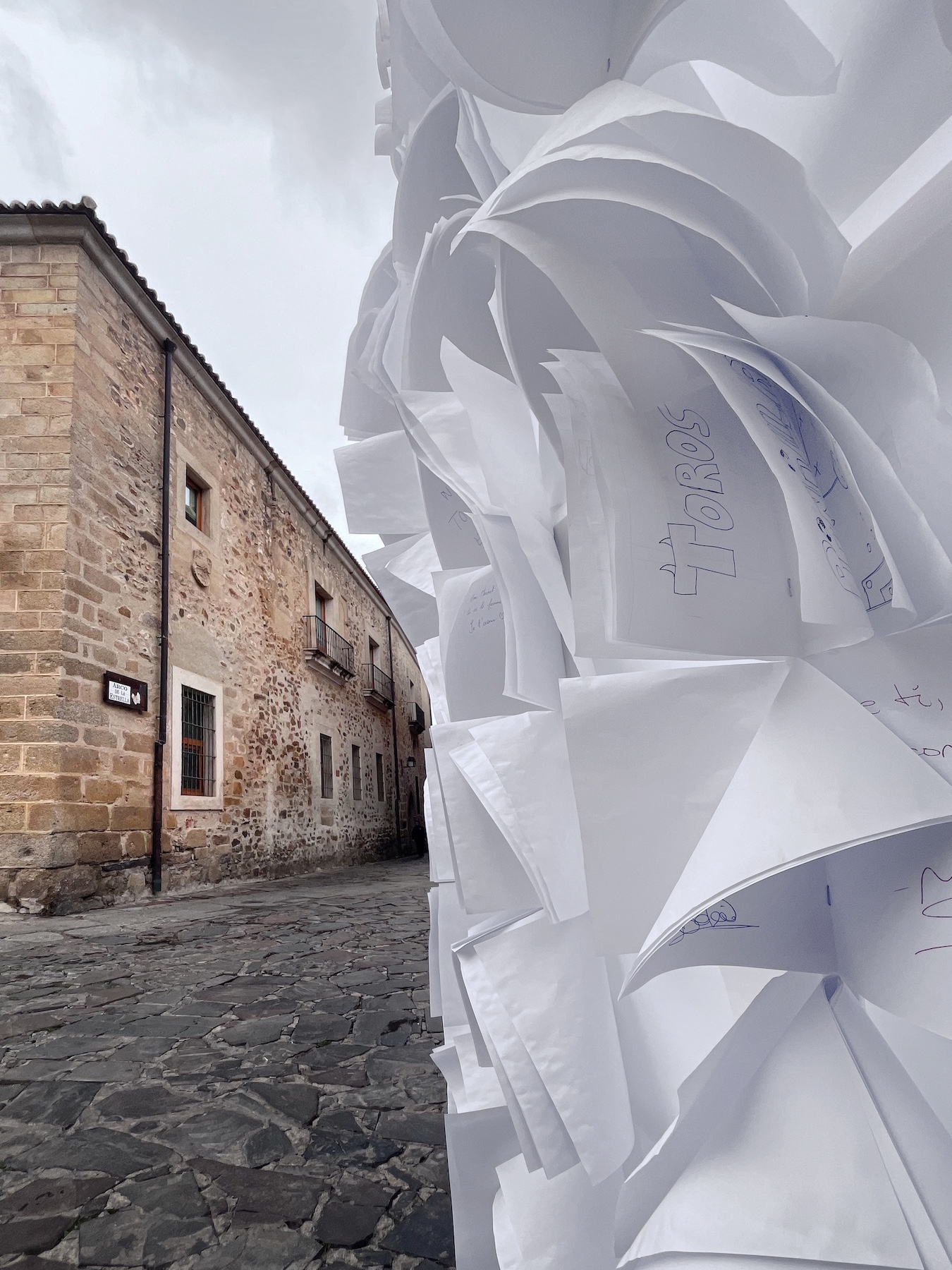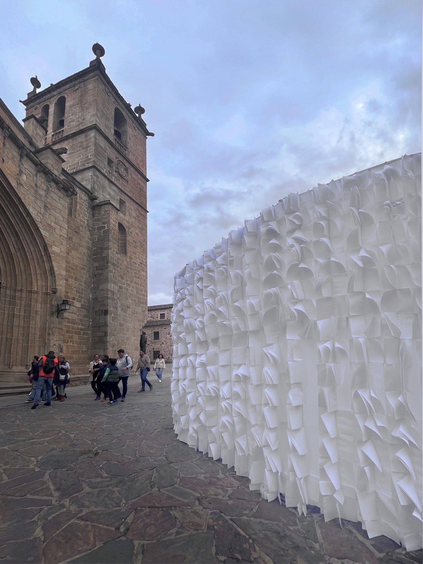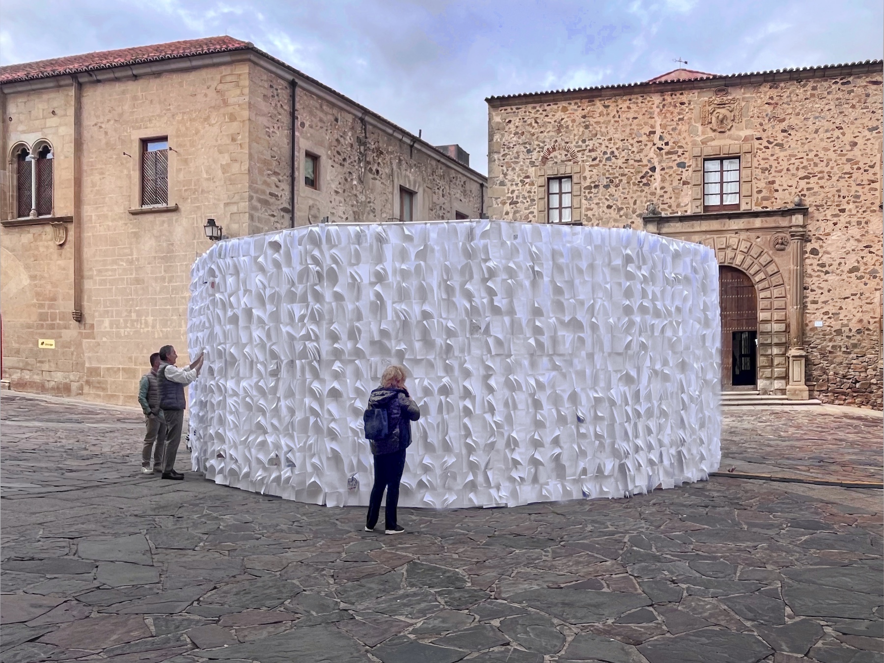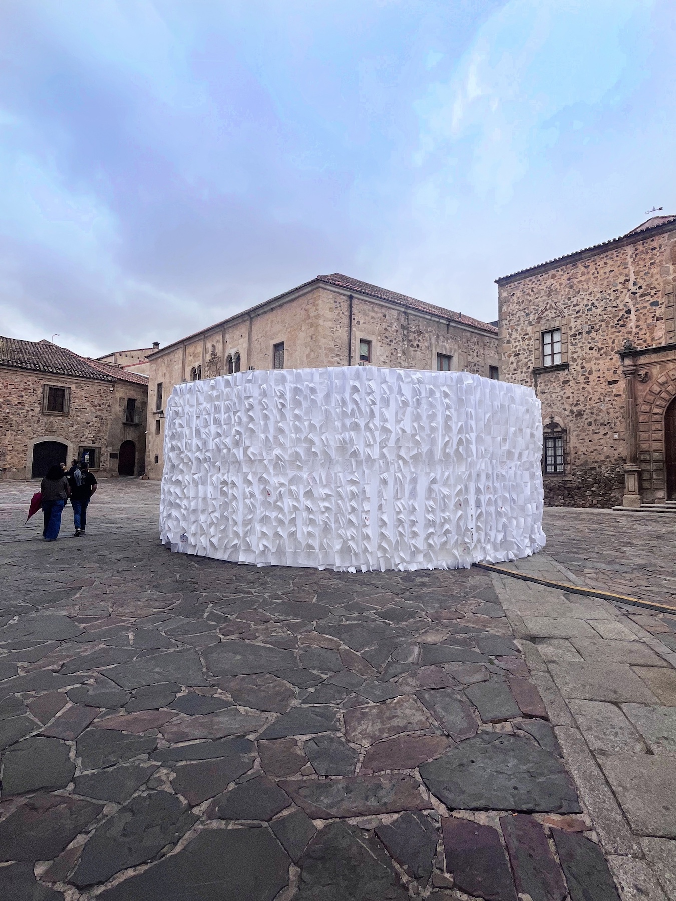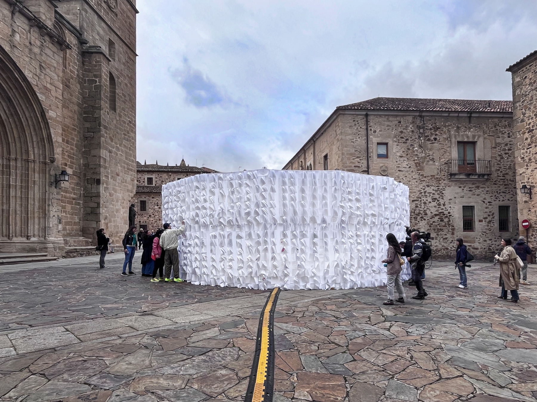 “En hojas blancas” es una instalación que ya hemos realizado en distintas partes del mundo. La versión creada para Cáceres ha sido una de las más ambiciosas por su escala, implicación local y valor simbólico como punto de partida del camino hacia la capitalidad cultural.