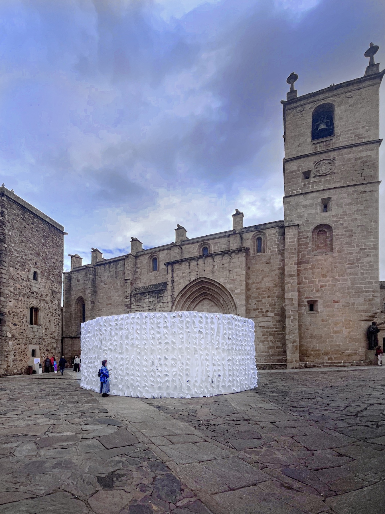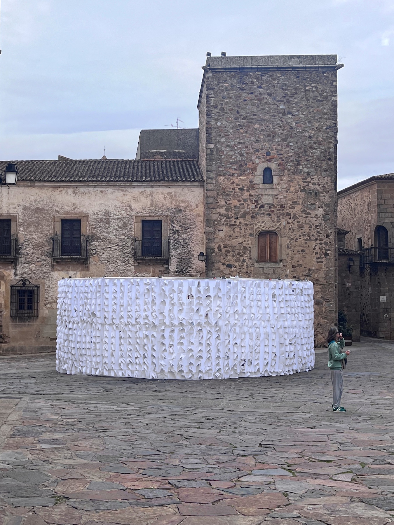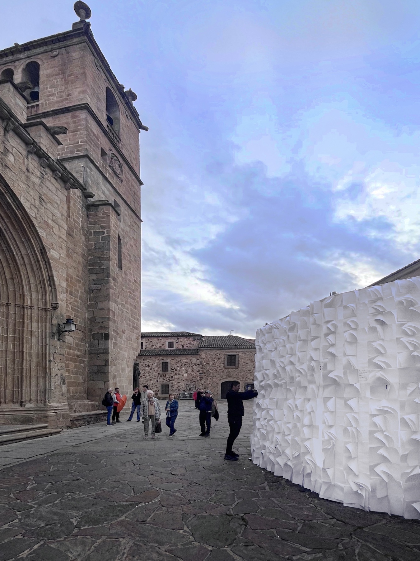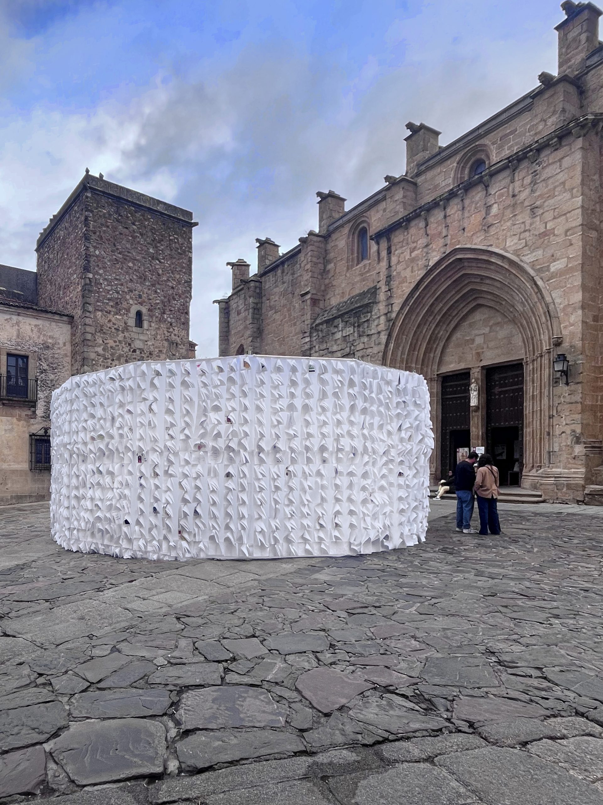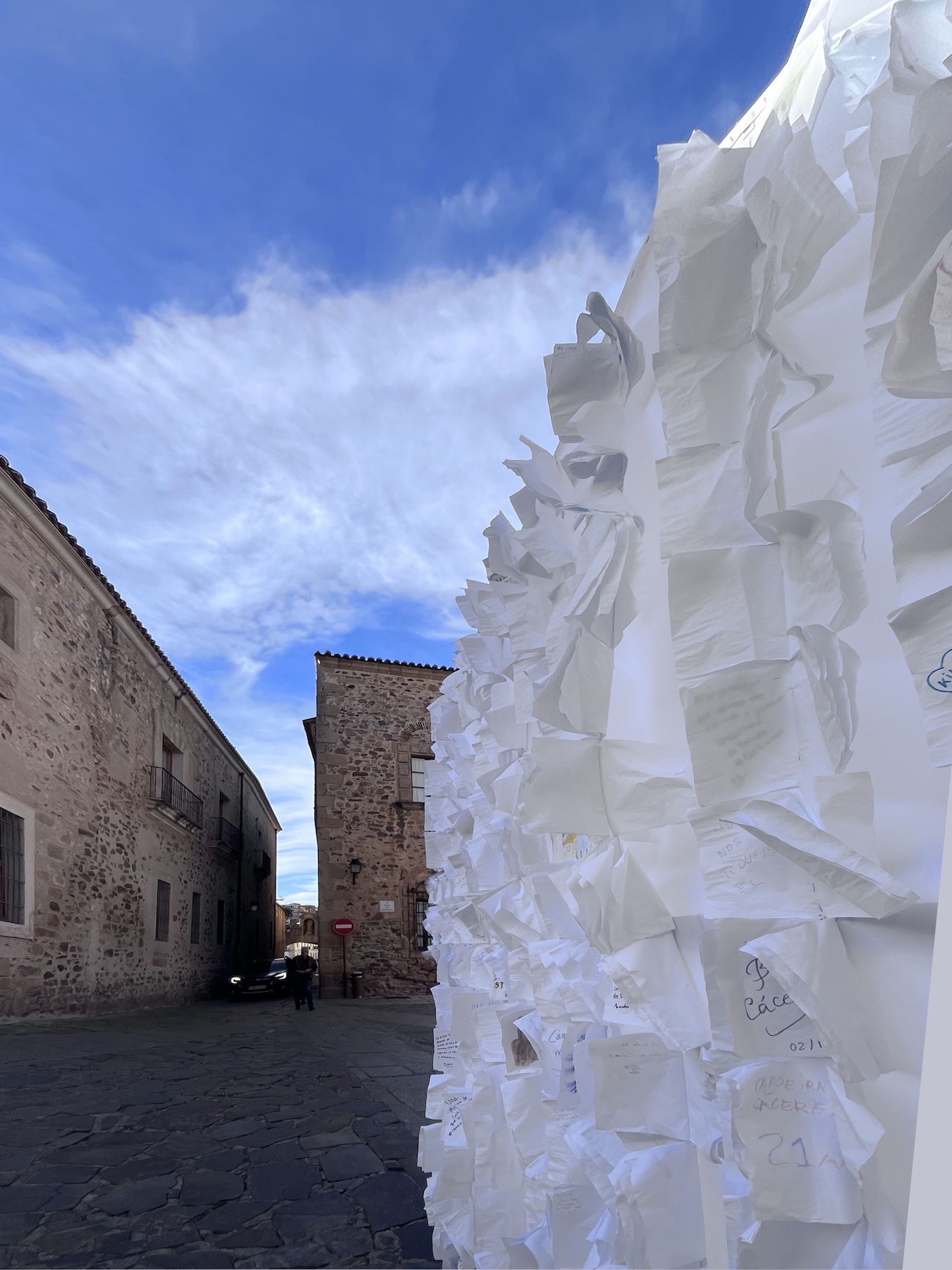 “En hojas blancas” es una instalación que ya hemos realizado en distintas partes del mundo. La versión creada para Cáceres ha sido una de las más ambiciosas por su escala, implicación local y valor simbólico como punto de partida del camino hacia la capitalidad cultural.