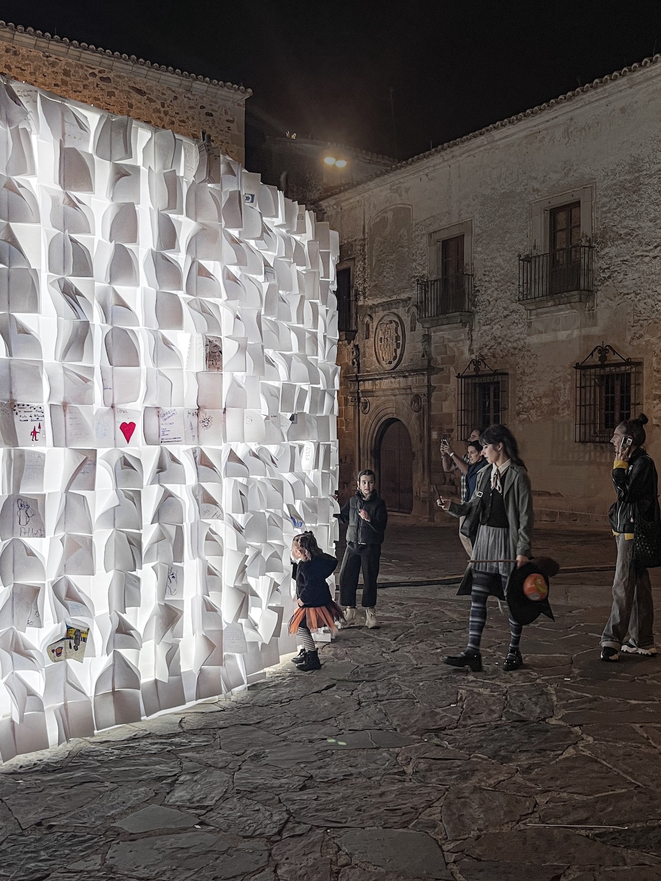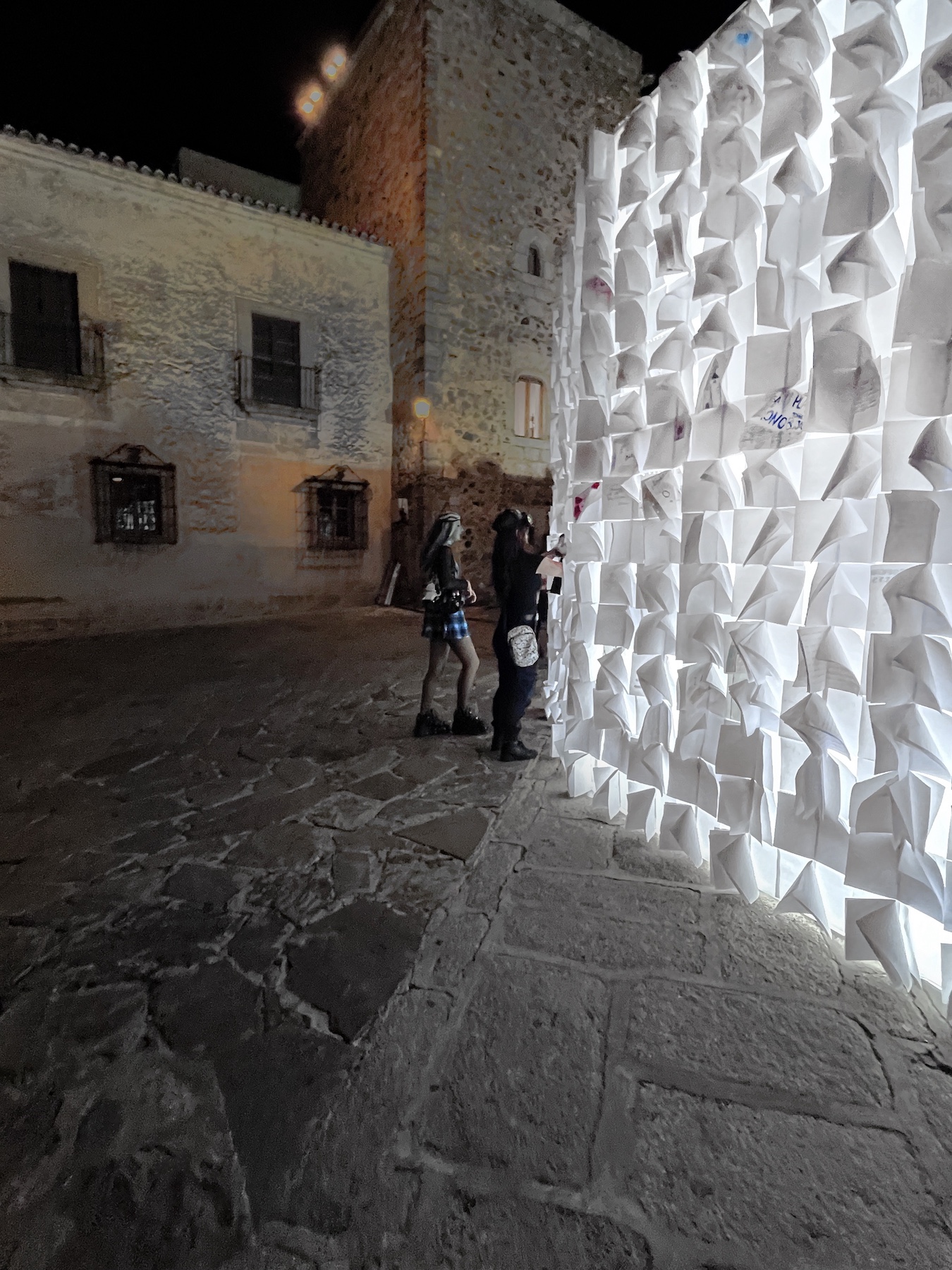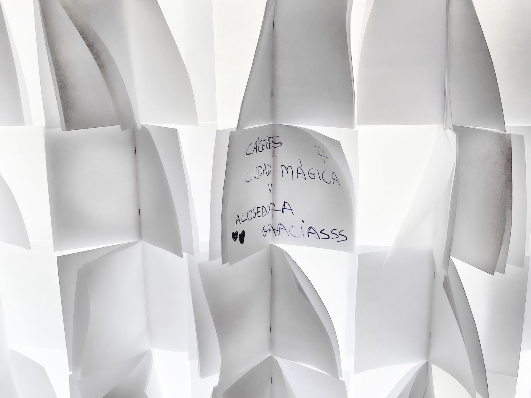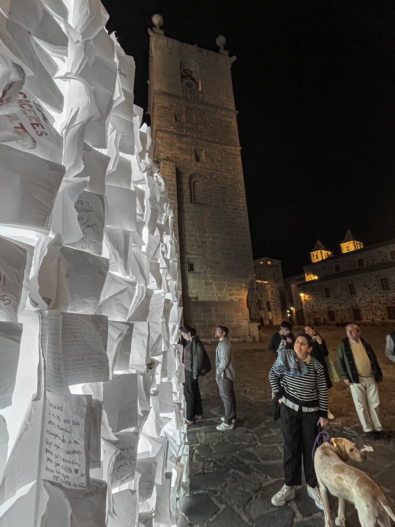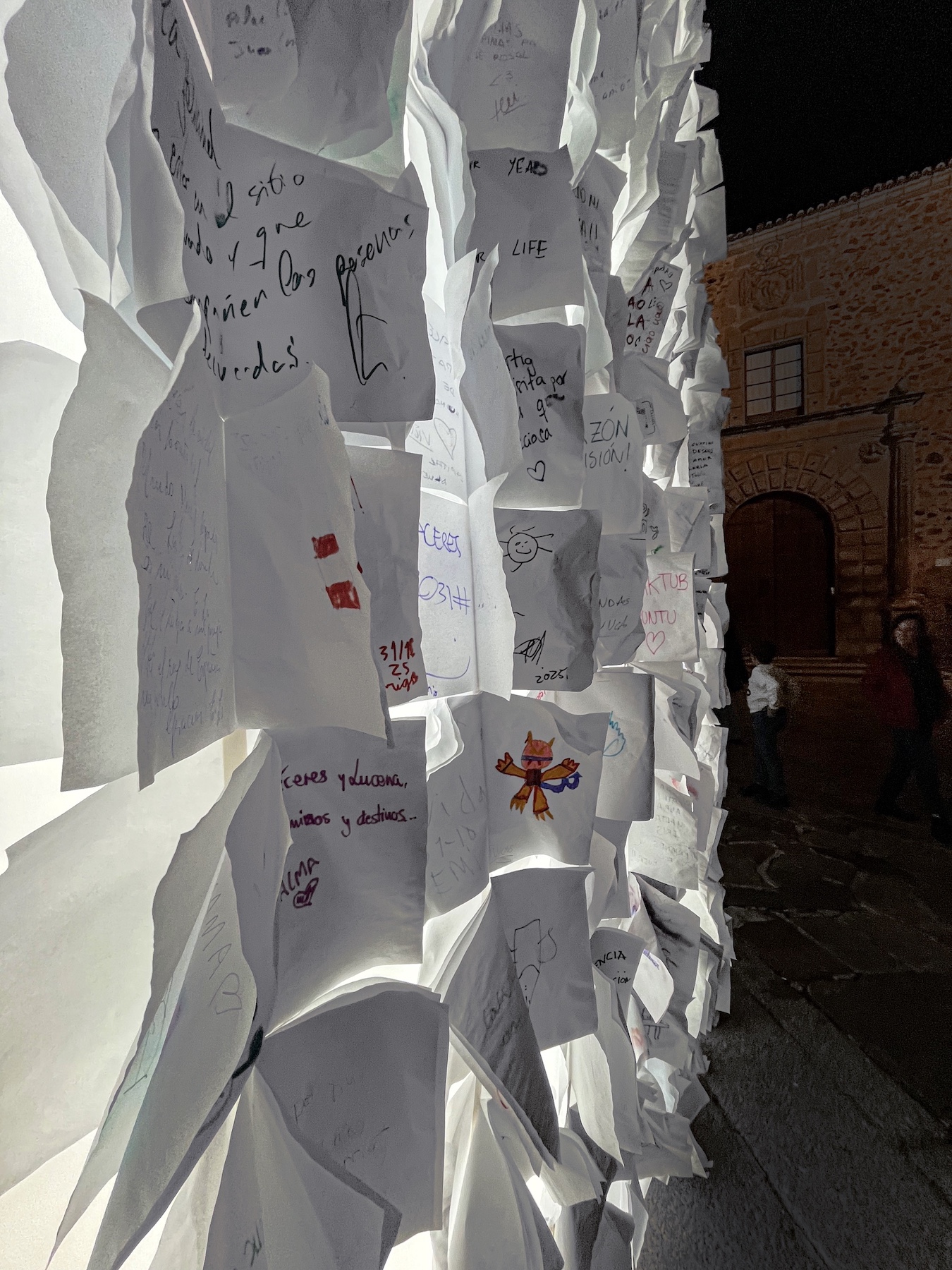 “En hojas blancas” es una instalación que ya hemos realizado en distintas partes del mundo. La versión creada para Cáceres ha sido una de las más ambiciosas por su escala, implicación local y valor simbólico como punto de partida del camino hacia la capitalidad cultural.