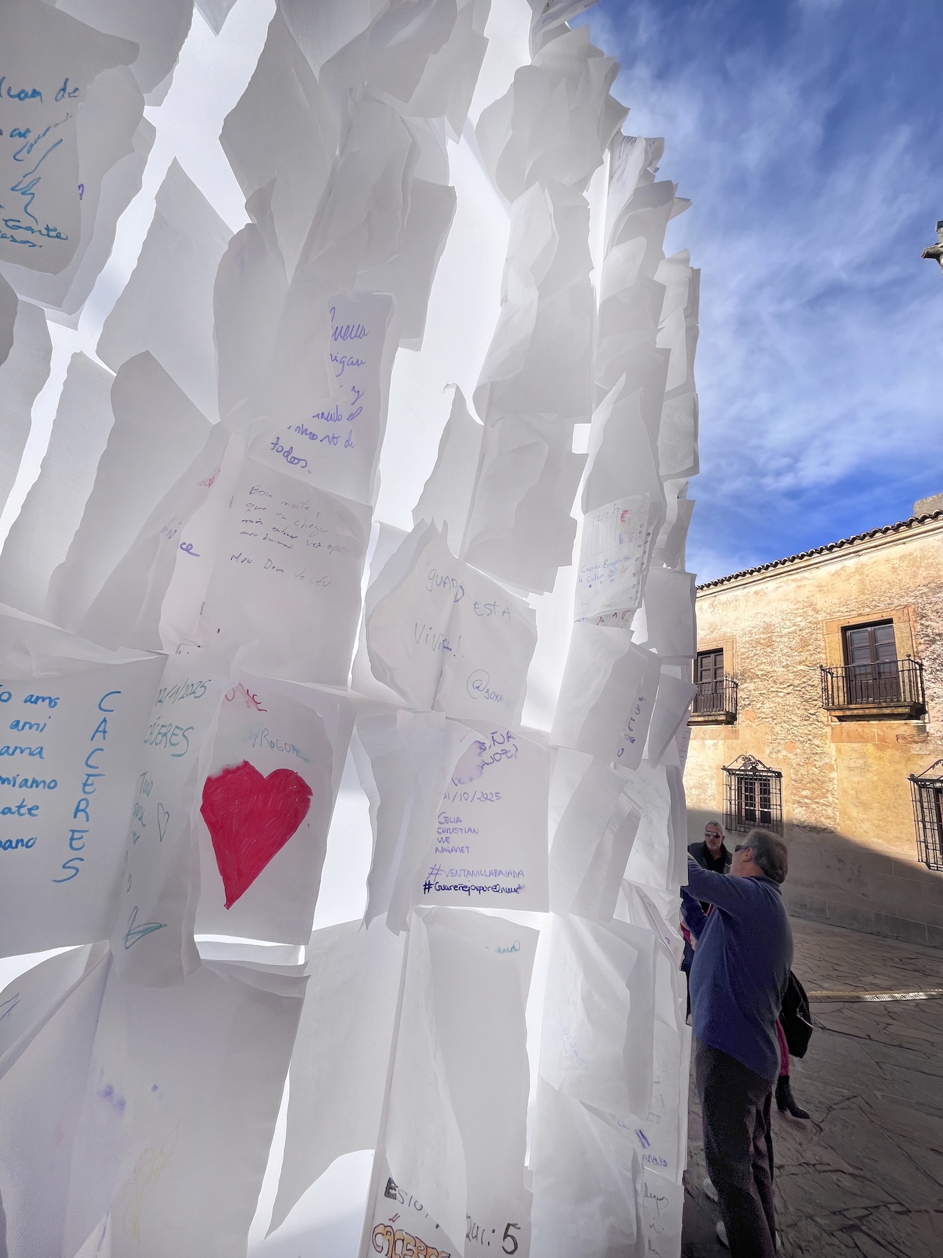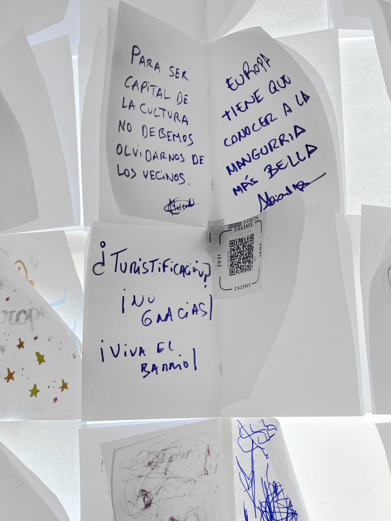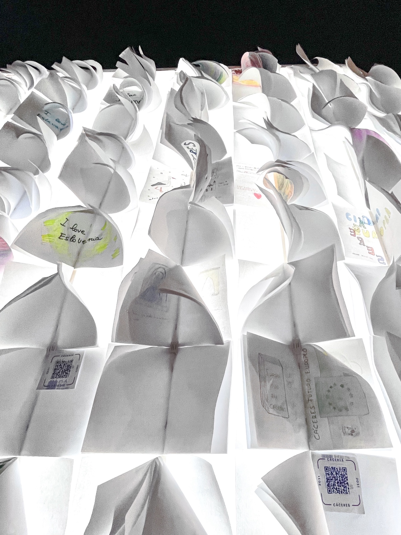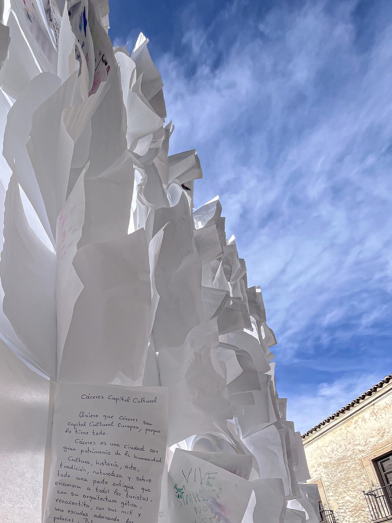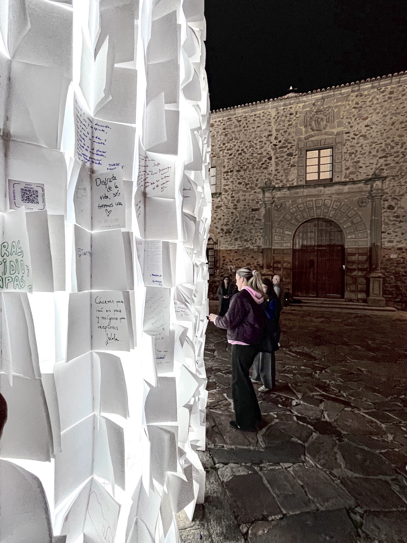 “En hojas blancas” es una instalación que ya hemos realizado en distintas partes del mundo. La versión creada para Cáceres ha sido una de las más ambiciosas por su escala, implicación local y valor simbólico como punto de partida del camino hacia la capitalidad cultural.
