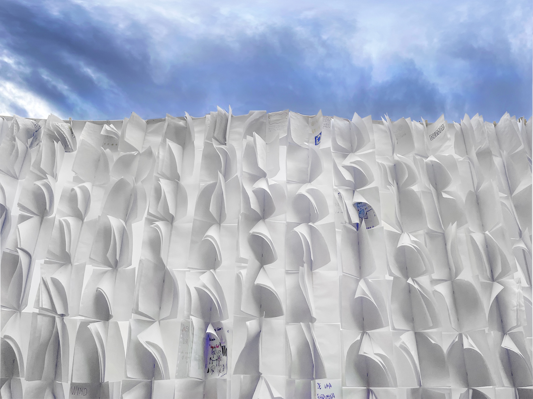 Durante tres días, la pieza ocupó la Plaza de Santa María con un gran muro circular recubierto por miles de cuadernos intervenidos con mensajes de los ciudadanos. La estructura, iluminada desde el interior, funcionaba como un archivo colectivo y un muro de libre expresión, que el público podía escribir y transformar. El viento movía las páginas creando un collage imprevisible de ideas y reflexiones compartidas.