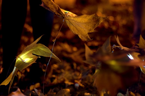 For the installation An Almost ephemeral Autumn we lit 200 dry leaves and lifted them from the ground until it seemed as if a truly soft breeze of light had made the Autumn fallen leaves raise into the air.