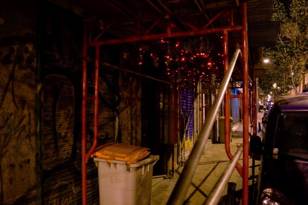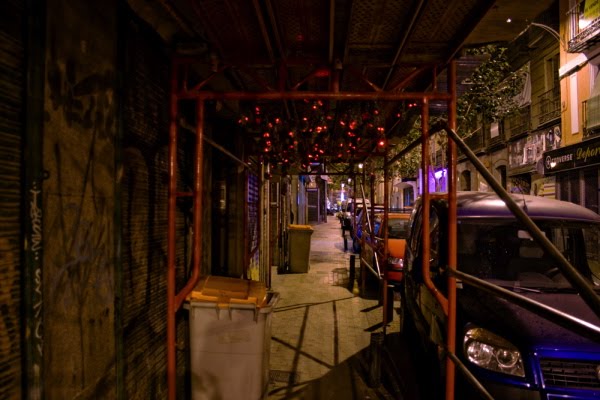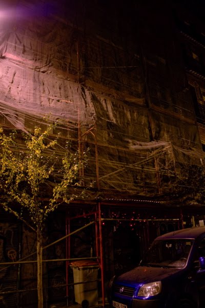 These dark caves of scaffolding, so frequently seen in our daily walks through a Madrid under construction, seem to have become the urban refuge for some strange creatures.