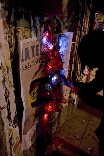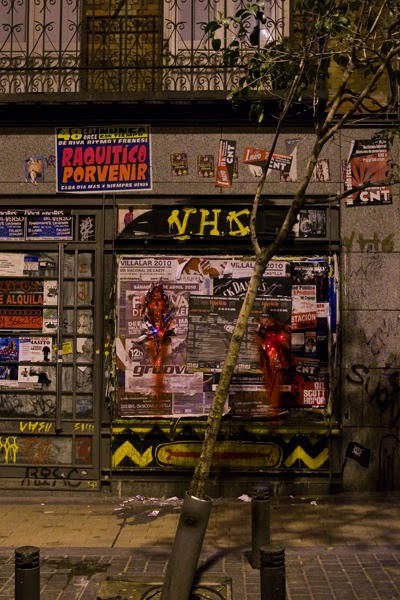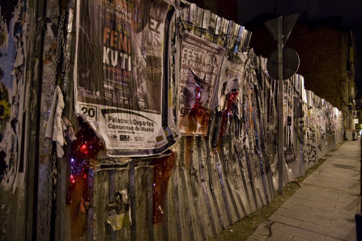 La intervención se ha llamado Publicidad herida de muerte y tuvo lugar el 21 de abril. Esa noche unos 15 tomos de carteles, sangraron y ardieron, para concienciar a los transeuntes sobre el estado lamentable en que se encuentran nuestras calles más transitadas, a causa de esta publicidad invasiba.