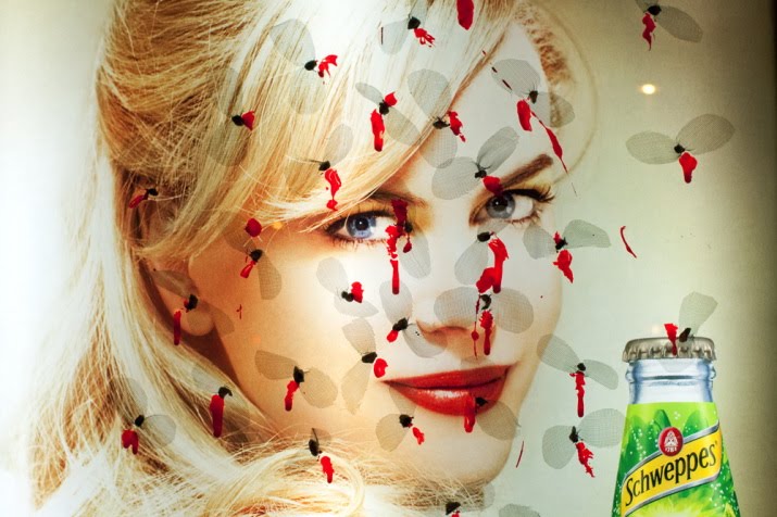 En estas noches de calor sofocante, de los mosquitos no se libran ni los guapos y perfectos modelos, de cutis impecable, que se exhiben omnipresentes en los espacios publicitarios de la ciudad. Y es que la belleza y la intensa luz, les atrae y hace que se precipiten cegados hacia ella, sin intuir que van a una muerte segura.