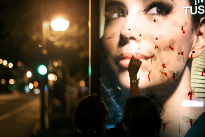 This is how on 29 June a plague, of about 200, ended up against the overlit glass panels of the advertising billboards in the centre of the city.