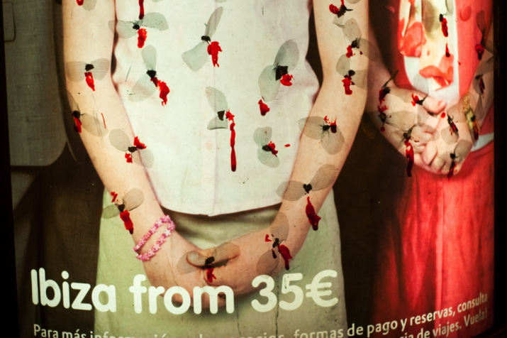 On nights of unbearable heat, mosquitos feed on even the handsome and perfect models, with smooth skin, that our exhibited everywhere in the advertising spaces in the city. And it is the beautiful and intense light what attracts them and makes them fall towards it-not knowing it will be their end for sure.